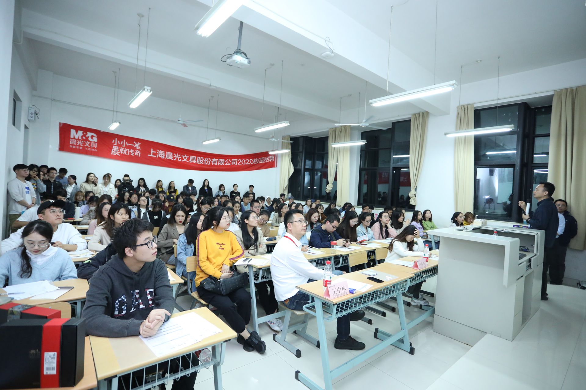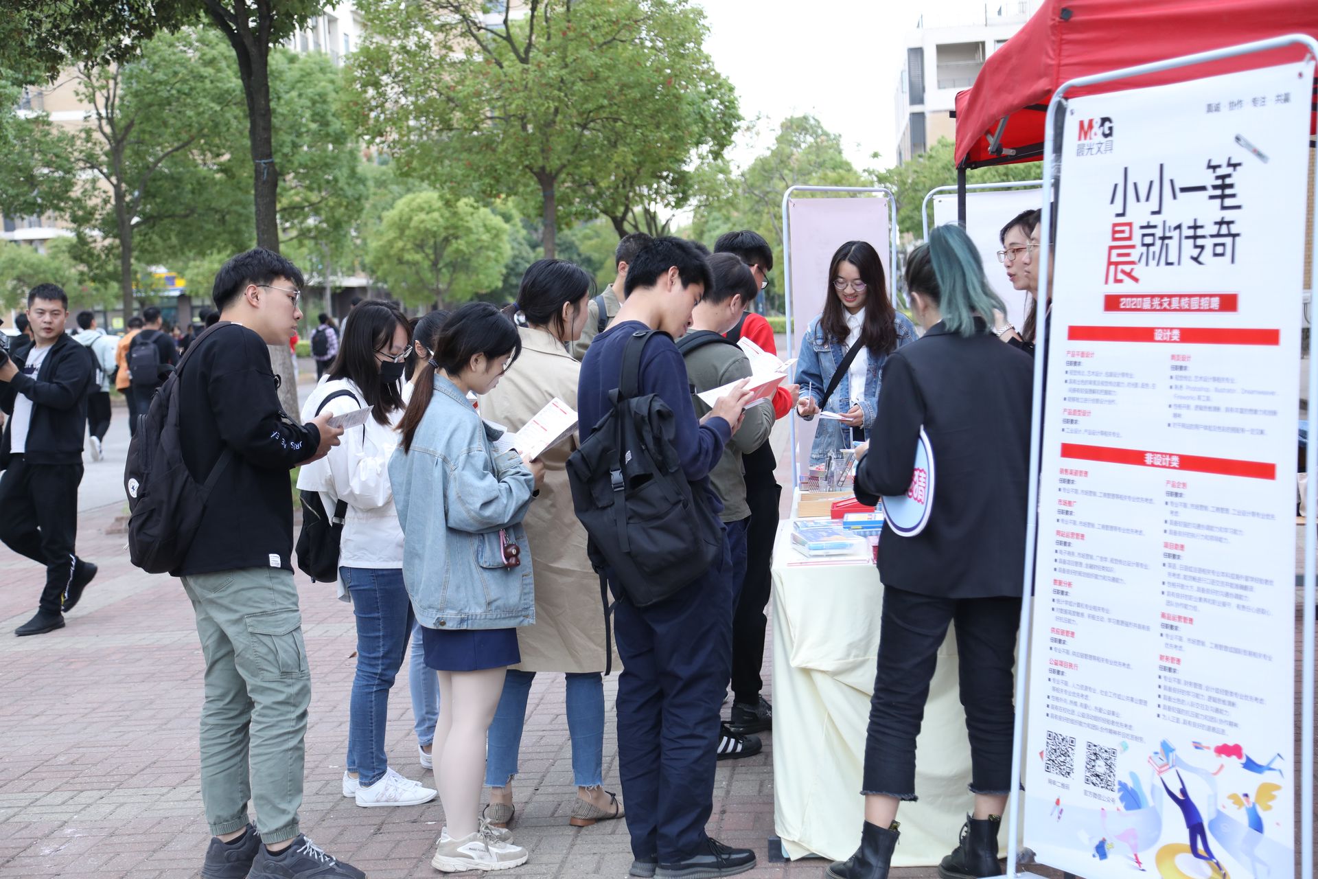 小小一筆,晨就傳奇!2020屆秋季校園招聘,我們進入上海應用技術大學、江蘇大學、湖北工業大學等高校的校園,一場場品牌路演活動吸引了 “文具控”的紛紛駐足,興致滿滿的參與到了活動中來,專場宣講會更是吸引了大批晨光迷們前來參加,現場座無虛席。2020屆春季校園招聘,雖然受到疫情影響,但我們沒有缺席,一場場視頻面試和空中雙選會,依舊吸引著同學們加入。