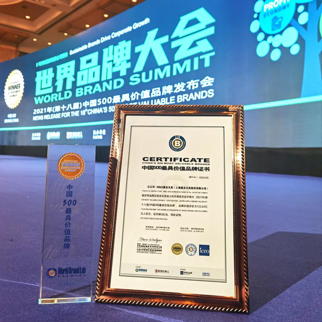 晨光文具榮獲2021年“中國500最具價值品牌”第382位