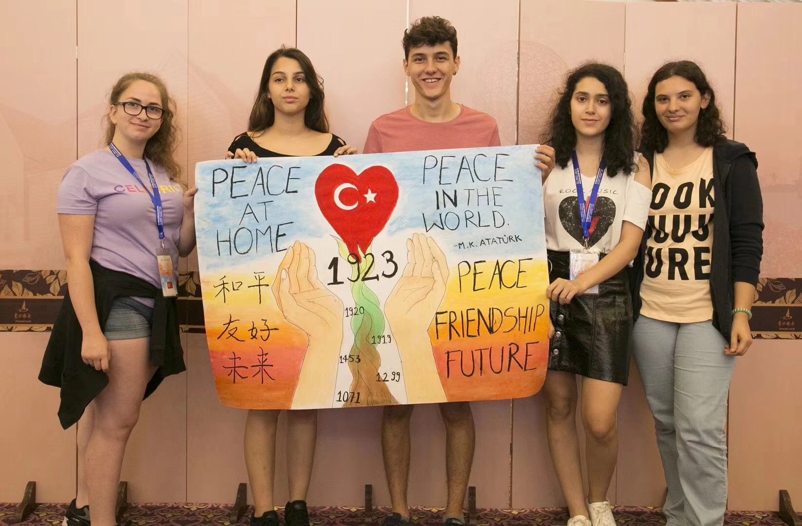 這幅作品,畫面上一顆和平的樹木,經歷幾百年,終于在1923年結出標志著土耳其建國的愛心果實,來自那片土地上的青少年們,用這種獨特的方式,祈愿世界和平。