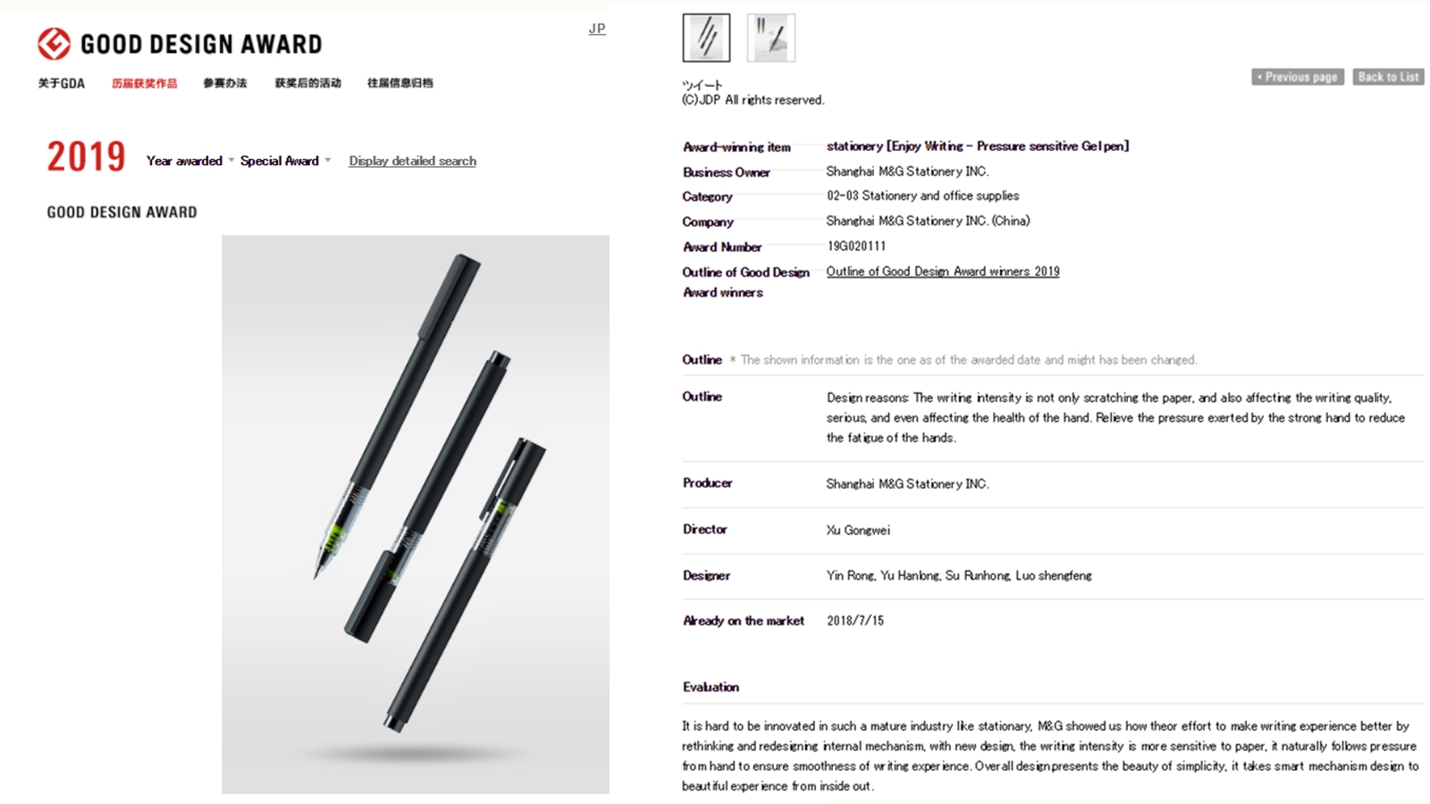 作為國內(nèi)中性筆首例,晨光文具斬獲2019日本G-mark設(shè)計(jì)獎(jiǎng)