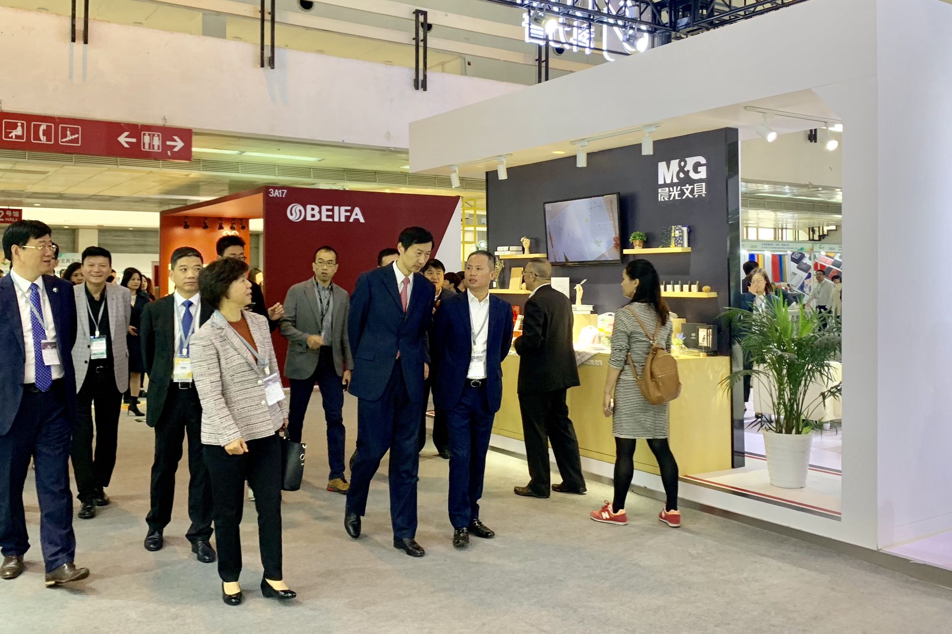 中國文教體育用品協會理事長易曉俐、中國國際展覽中心黨委書記林舜杰與晨光文具董事長陳湖文先生一同參觀了晨光展區,并對晨光文具的技術創新和產品研發給予了高度評價。