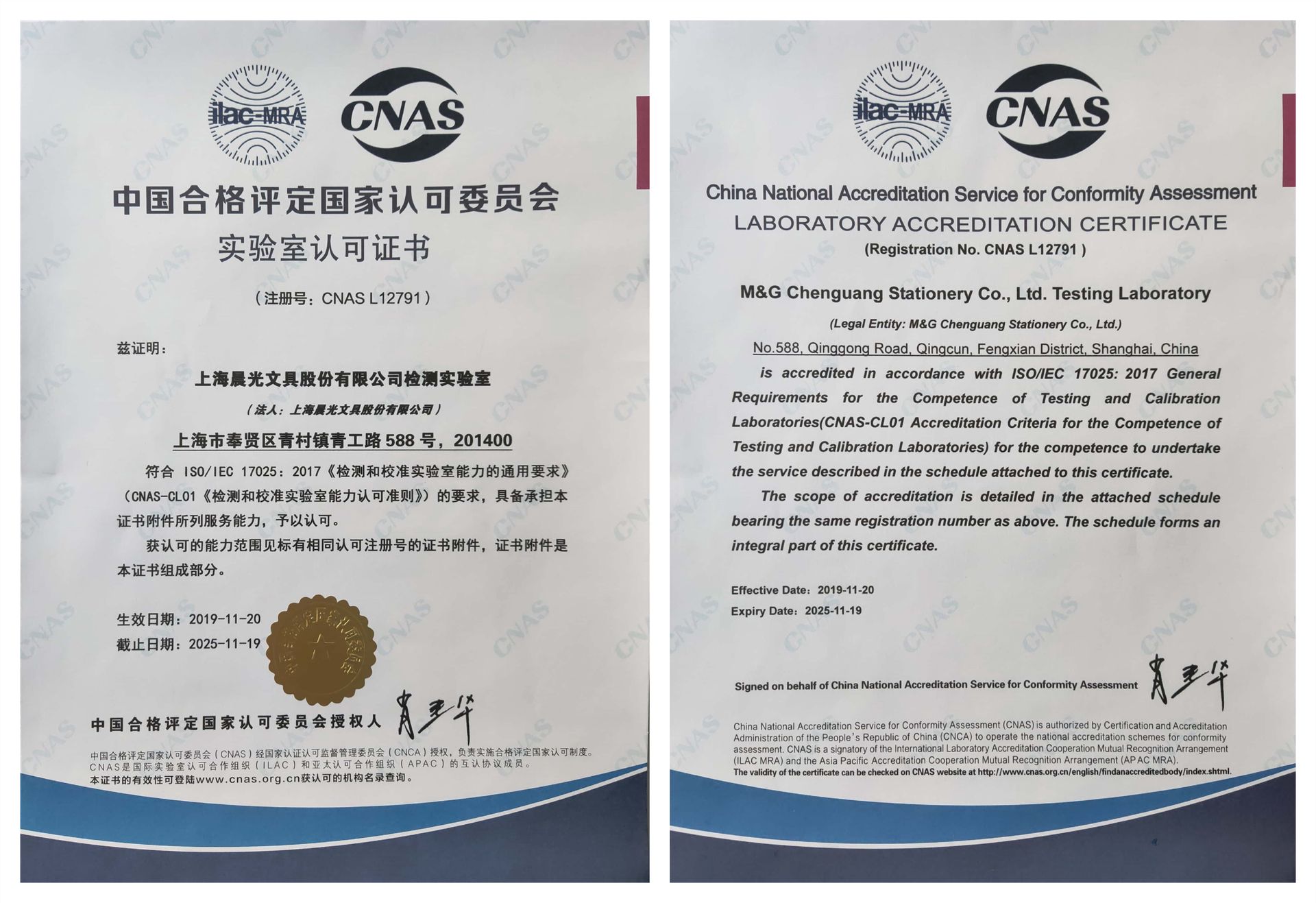 晨光文具實驗室獲CNAS認可證書